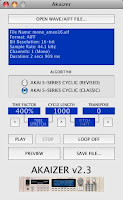 Akaizer is a freeware application for Windows / macOS / Linux which can time stretch (and/or pitch shift) any WAVE or AIFF sound file in the style of the 'cyclic' time stretch which featured on old Akai sound samplers, like the S950 / S1000 / S2000 / S3000 series. This is ideal for DAW-based music producers who want that classic metallic-sounding effect, as used in many old school Hardcore / Jungle / Speed Garage tunes from the 1990s, without the need for an actual Akai sampler.